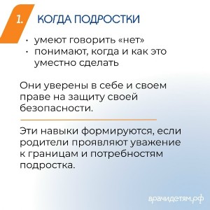 Подростки, которые умеют говорить «нет», понимают, когда и как это уместно сделать – уверены в себе и своем праве на защиту своей безопасности.