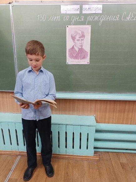 Классный час, посвященный великому русскому лирику, оказался насыщенным и познавательным.В начале мероприятия ребята познакомились с основными этапами жизни Сергея Есенина. Затем наступило время поэзии. Звучали стихи Есенина в исполнении профессиональных чтецов. После этого некоторые дети сами попробовали себя в роли чтецов, декламируя любимые стихи Есенина.