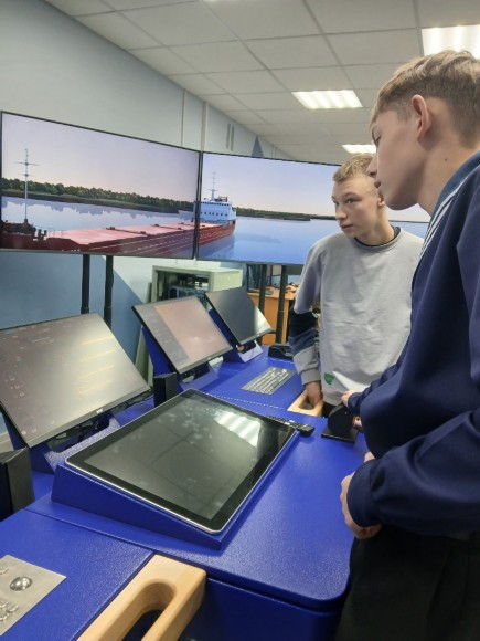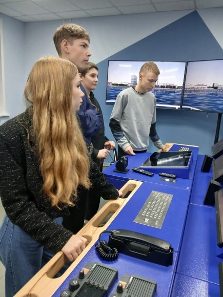 В рамках проекта "Дегустации профессий", 9А класс вместе с классным руководителем, Семихатской Любовью Николаевной, посетил Высшую школу мореходства и рыболовства САФУ, где ребята познакомились с профессией судоводителя.