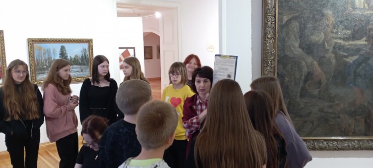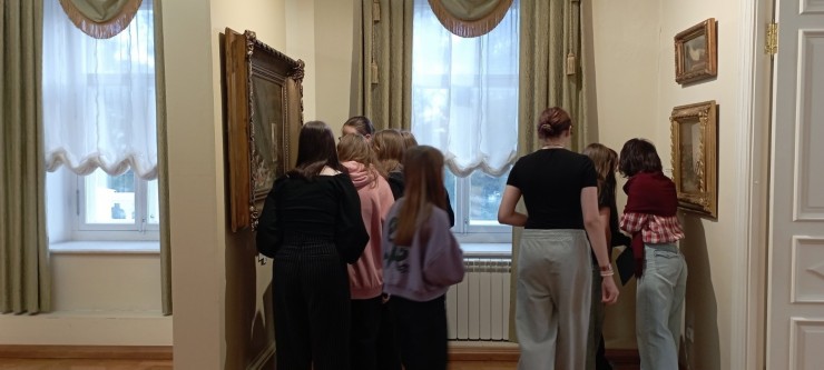 Выполняя задания, ребята смогли познакомиться с интерьерами дома и богатой коллекцией картин, собранной музеем.