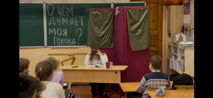 Литературный час по произведениям «О чём думает моя голова?» для учащихся 4-х классов Все дети любят весёлые истории о школе и школьниках. А рассказы Ирины Михайловны Пивоваровой с удовольствием читают и взрослые, и дети. Самым известным произведением писательницы является книга «О чём думает моя голова ?» В ней главная героиня, Люся Синицына, при выполнении домашних заданий занимается совсем не тем, что нужно. А как это происходит, четвероклассники увидели в юмористической сценке, которую показали участницы кружка «Книжкины чудеса» (руководитель Смирнова Марина Александровна).